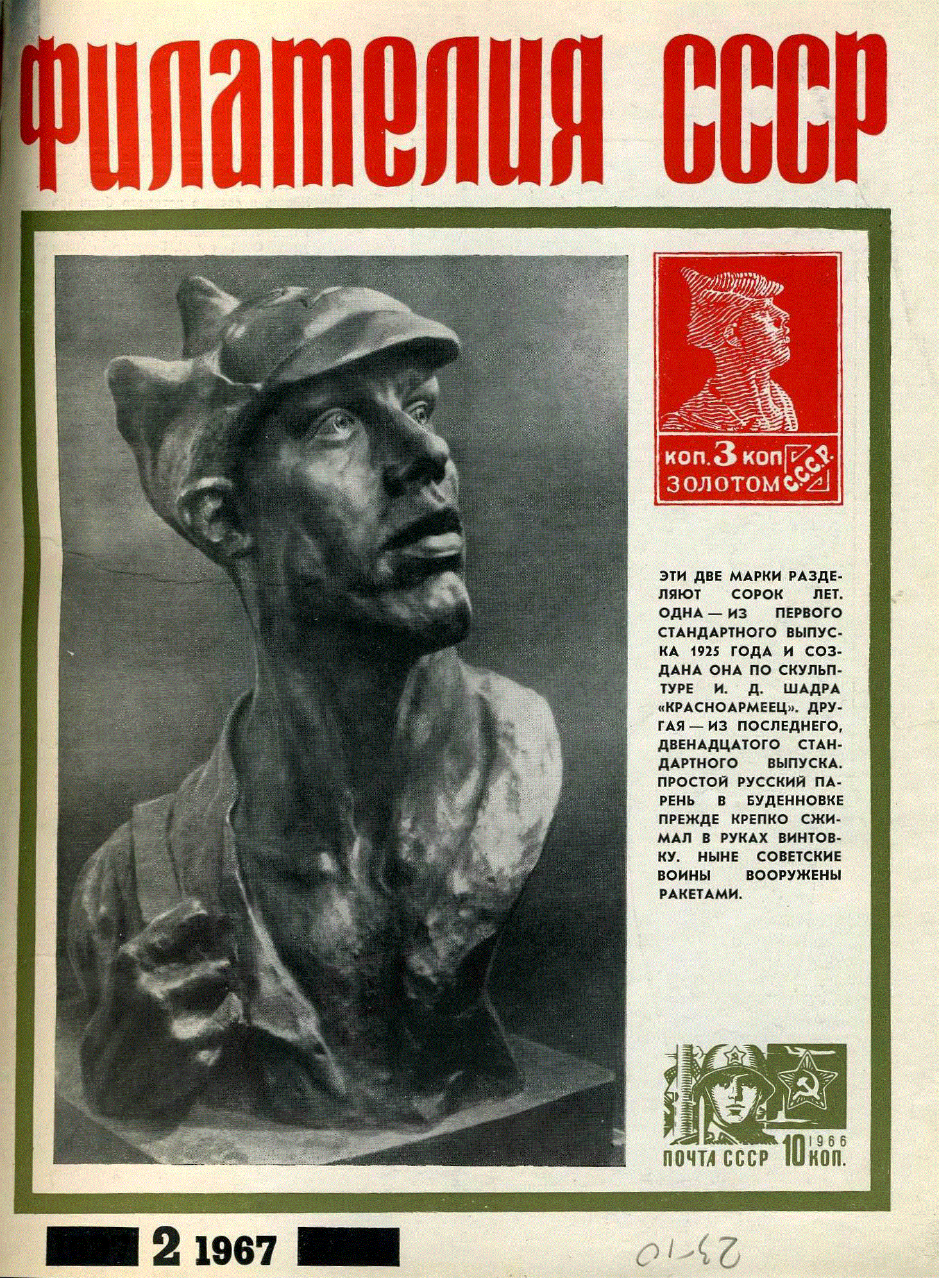 В номере: Петроград 1917 - Ленинград 1967......2 Первенец Африканской ленинианы..4 Фея - Филателия.........................................6 Советские почтовые тарифы...............8 Надпечатки на марках Германии........12 Вы готовитесь к выставке...................15 Филателия в НР Болгарии....................17 Под крышей двух веков........................18 У причала революции............................20 Три письма из отеля "Таллин"...........22 Советские специальные почтовые штемпеля в 1967 году............................27 "POLSKA - 1000"......................................30 Справочное бюро..................................33 В президиуме ВОФ................................34 Хорошая страна филокартия...........40 Молодцы так держать!........................42 ...далекая звезда....................................44
